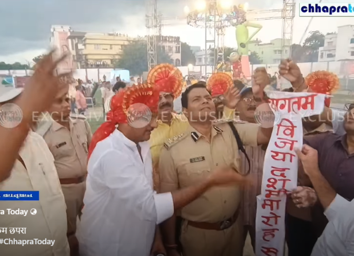 Chhapra: विजयादशमी के पावन अवसर पर छपरा के राजेन्द्र स्टेडियम में भव्य रावण वध कार्यक्रम का आयोजन किया गया। हजारों की संख्या में जुटी जनता ने बुराई पर अच्छाई की विजय के इस पर्व का उत्साहपूर्वक आनंद लिया।