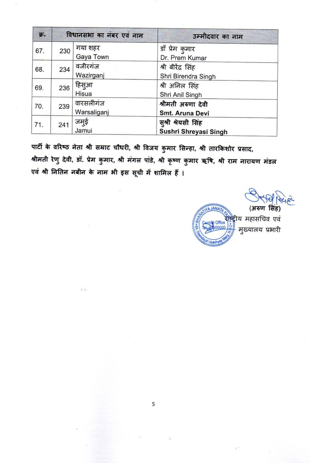 जिनमें 115-बनियापुर से कृष्णा कुमार राम (पीपल्स पार्टी ऑफ इंडिया- डेमोक्रेटिक), 116-तरैया विधानसभा सभा सीट से अमित कुमार सिंह (आम आदमी पार्टी) और संजय कुमार ( निर्दलीय), 118-छपरा विधानसभा सीट से अभिषेक शर्मा (निर्दलीय), 119-गड़खा विधानसभा सीट से निर्मला देवी (पीपल्स पार्टी ऑफ इंडिया (डेमोक्रेटिक)), 120-अमनौर विधानसभा सीट से राकेश कुमार (भारतीय एकता दल) और अली अब्बास (भारतीय मोमिन फ्रंट)। वहीं 121-परसा विधानसभा सीट से मदन मोहन श्रीवास्तव (प्राउटिस्ट ब्लॉक इंडिया) ने नामांकन का पर्चा दाखिल किया है।
