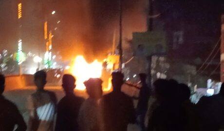 वाहन बाजार समिति की ओर से आ रहा था। तभी अचानक उसमें आग लग गई और धू धू कर जलने लगा। स्थानीय लोगों ने बताया कि चालक वाहन को छोड़कर फरार हो गया।