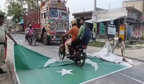 बिहार के बेतिया में सड़क पर बिछाया पाकिस्तान का झंडा, पुलिस ने कब्जे में लिया