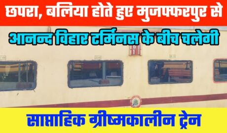 छपरा, बलिया होते हुए मुजफ्फरपुर से आनन्द विहार टर्मिनस के बीच चलेगी साप्ताहिक ग्रीष्मकालीन ट्रेन