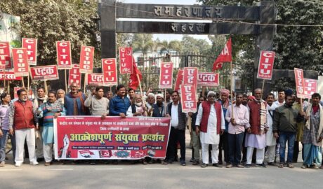 केंद्रीय ट्रेड यूनियन के आह्वान पर श्रम संगठनों ने बाजार में प्रतिरोध मार्च निकाल प्रदर्शन किया