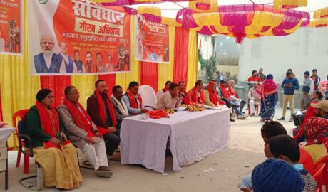 chhapra : पूरे बिहार में भारतीय जनता पार्टी संविधान गौरव अभियान चला रही है इसके तहत हर गांव कस्बे दलित बस्तियों में जाकर बिहार के मंत्री संविधान के विषय में लोगों से चर्चाएं कर रहे हैं बता रहे हैं इसी के अंतर्गत बिहार सरकार की मत्स्य पशुपालन मंत्री एवं पूर्व उपमुख्यमंत्री रेणु देवी सोनपुर विधानसभा के दिघवारा प्रखंड के बेरूआ पंचायत भवन ककरहिया ग्राम में भाजपा अनुसूचित जाति मोर्चा से जिला अध्यक्ष कृष्णा राम की अध्यक्षता में आयोजित संविधान गौरव सभा में आज वहां उपस्थित दलित पिछड़े वर्ग की महिलाओं एवं पुरुषों को संबोधित करते हुए कहा कि संविधान देश एवं आरक्षण की रक्षा देश के प्रधानमंत्री नरेंद्र मोदी और बिहार के मुख्यमंत्री नीतीश कुमार कर रहे हैं आज जो लोग हाथ में संविधान लेकर घूम रहे हैं वह स्वयं संविधान की धज्जियां उड़ाने वाले लोग राहुल गांधी एवं उनके पुरखे उनके दादी दादा उनके पिताजी तथा अन्य कांग्रेसियों ने हमेशा संविधान में बदलाव का काम किया है और संविधान की धज्जियां उड़ाई.