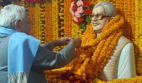 मुख्यमंत्री द्वारा कर्पूरी ठाकुर की प्रतिमा पर माल्यार्पण किया गया