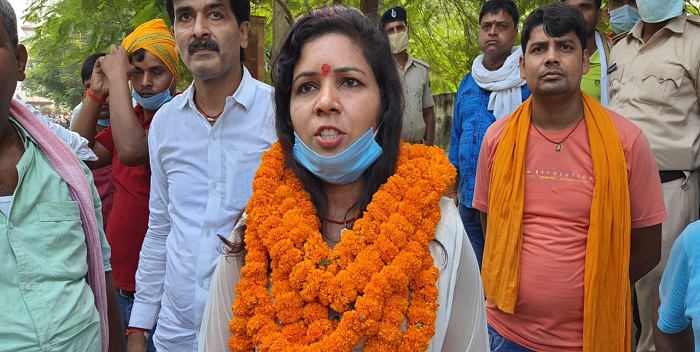 Chhapra: बनियापुर विधानसभा सीट से निर्दलीय प्रत्याशी भोजपुरी लोक गायिका पुष्पा सिंह ने नामांकन किया. नामांकन के बाद पुष्पा सिंह ने अपने अंदाज में गीत गया. उन्होंने कहा कि क्षेत्र की विकास के लिए वे मैदान में उतर रही है.