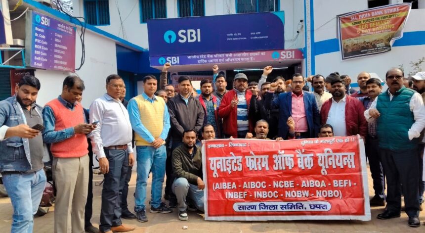 Chhapra: बैंक कर्मचारियों एवं अधिकारियों का प्रतिनिधित्व करने वाले संयुक्त मंच यूनाइटेड फोरम ऑफ बैंक यूनियंस (यूएफबीयू) के आह्वान पर मंगलवार को छपरा स्थित सार्वजनिक क्षेत्र के सभी बैंकों में कामकाज पूरी तरह ठप रहा। हड़ताल के कारण जिले में लगभग 10 करोड़ रुपये के नकद लेनदेन सहित करीब 100 करोड़ रुपये के बैंकिंग व्यवसाय पर प्रतिकूल प्रभाव पड़ा।