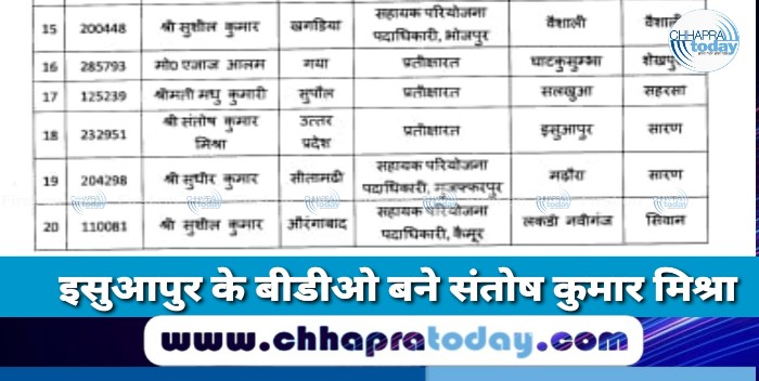 बिहार के कई BDO का तबादला इसुआपुर के बीडीओ बने संतोष कुमार मिश्रा