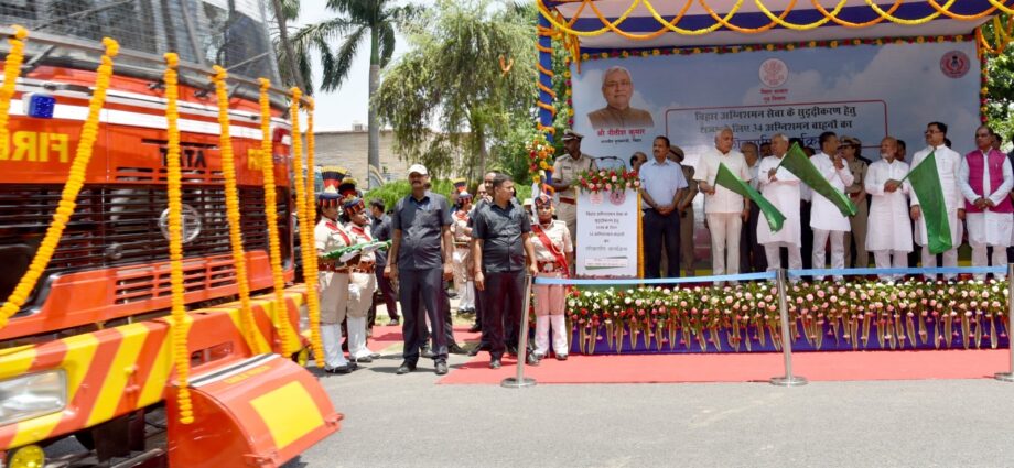 पटना, 21 जुलाई (हि.स.)। मुख्यमंत्री नीतीश कुमार ने शुक्रवार को बिहार अग्निशमन सेवा के सुदृढ़ीकरण के लिए 34 अग्निशमन वाहनों को हरी झंडी दिखाकर रवाना किया।