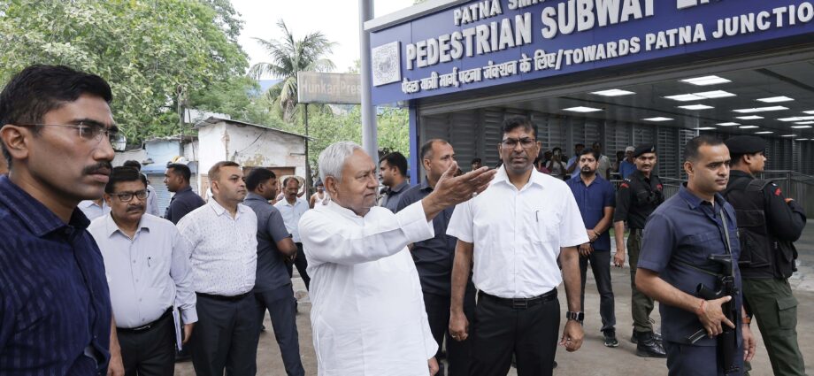 पटना: मुख्यमंत्री नीतीश कुमार ने आज निर्माणाधीन भूमिगत पैदल यात्री मार्ग (सब-वे) का निरीक्षण किया। यह भूमिगत पैदल यात्री मार्ग पटना जंक्शन के पास से शुरू होकर मल्टी लेवल पार्किंग, जीपीओ तक बनाया गया है।
