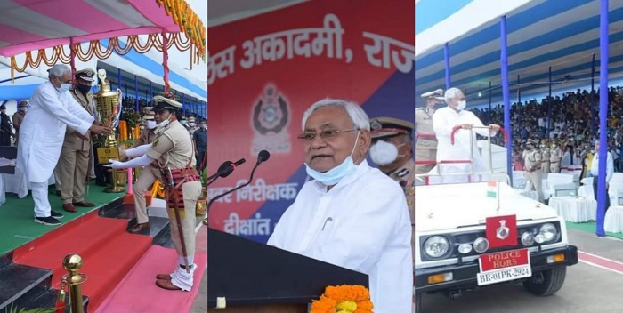 “न्याय के साथ विकास और सशक्त महिला, सक्षम महिला ” के सूत्र वाक्य के साथ समारोह को संबोधित करते हुए सबसे पहले मुख्यमंत्री नीतीश कुमार ने सभी प्रशिक्षु अवर निरीक्षकोंं को बधाई दी. अपने संबोधन में उन्होंने कहा कि झारखण्ड अलग होने के बाद बिहार में ट्रेनिंग की व्यवस्था नहीं थी. राजगीर में पुलिस अकादमी के निर्माण किया गया. यहां पुलिस बल के प्रशिक्षण के लिए बेहतर सुविधाएं प्राप्त हैं. उन्होने कहा कि महिलाओं की सुरक्षा सबसे जरूरी है और राज्य में कानून का राज्य कायम रखना मेरी प्राथमिकता है.
