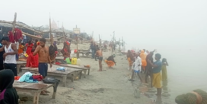 Chhapra: मकर संक्रांति के दिन सोमवार को कड़ाके की ठंड और घना कोहरा होने पर भी सरयू, गंगा और गंडक नदी के घाटों पर श्रद्धालुओं ने आस्था की डुबकी लगाई।
