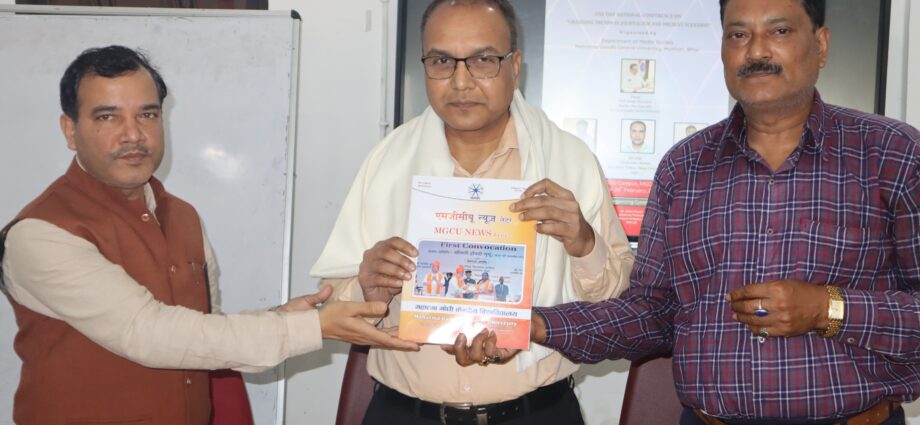 पूर्वी चंपारण,20 फरवरी (हि.स.)। महात्मा गांधी केन्द्रीय विश्वविद्यालय के मीडिया अध्ययन विभाग द्वारा गुरुवार को ‘पत्रकारिता में बदलते रुझान और वर्तमान परिदृश्य व स्वरूप: टीवी न्यूज पैकेजिंग’ विषय पर एक दिवसीय राष्ट्रीय संगोष्ठी का आयोजन किया गया। संगोष्ठी के मुख्य वक्ता शैलेंद्र कुमार, कार्यकारी संपादक, न्यूज कॉरिडोर, नई दिल्ली थे। अध्यक्षता मीडिया अध्ययन विभाग के अध्यक्ष डॉ. अंजनी कुमार झा ने की, जबकि संचालन विभाग के सहायक आचार्य डॉ. सुनील दीपक घोडके ने किया।