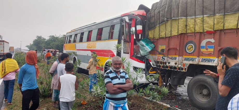 यूपी से पूर्णिया शादी समारोह में जा रही बस ने खड़ी ट्रक में मारी टक्कर ,चार रेफर, 21 घायल