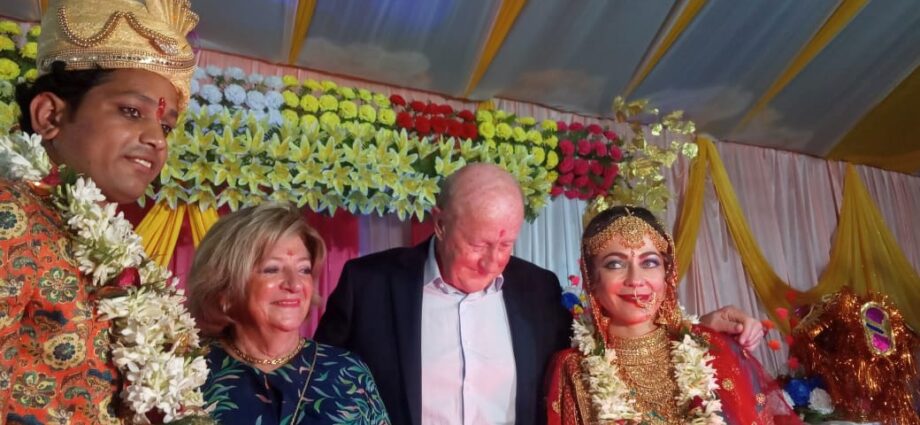 पूरी तरह से सनातन परंपरा के आधार पर वैदिक रीति रिवाज के साथ शादी संपन्न होने के बाद सोमवार को दिन में भी विदेशी दुल्हन को देखने के लिए लोगों की भीड़ जुटी रही। मामला बेगूसराय जिला के भगवानपुर कटहरिया का है। जहां कि रामचंद्र साह के पुत्र राकेश कुमार ने पेरिस की रहने वाली व्यवसायी मैरी लोरी हेरल के साथ सनातन परंपरा के अनुसार विवाह रचाया है। सात समंदर पार से विवाह करने के लिए ना सिर्फ लड़की आई थी, बल्कि लड़की के परिजन भी साथ आए थे। अगले सप्ताह फिर दूल्हा, दुल्हन और दुल्हन के माता-पिता विदेश लौट जाएंगे।