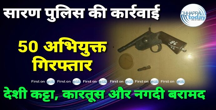 सारण पुलिस की कार्रवाई 50 अभियुक्त गिरफ्तार, एक देशी कट्टा और जिंदा कारतूस के साथ 15 हजार रुपये बरामद