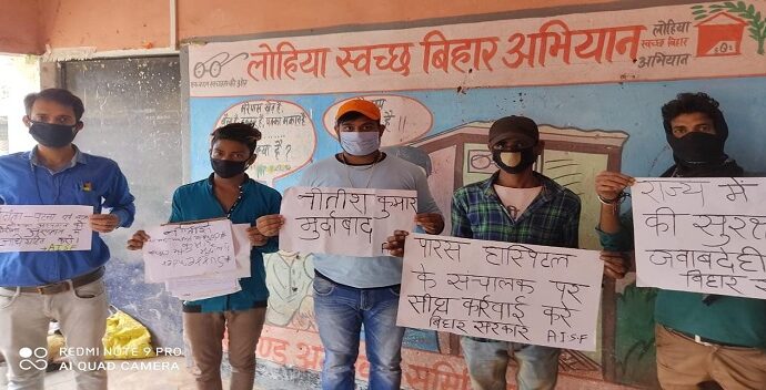 पारस अस्पताल के दोषी अफसरों एवं कर्मचारियों पर शीघ्र संज्ञान ले राज्य सरकार: AISF