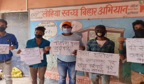 Chhapra: एआईएसएफ सारण जिला परिषद के कार्यकर्ताओं ने कोविड प्रोटोकॉल को फॉलो करते हुए अपने घर से ही बिहार में हो रही महिलाओं से लगातार दुराचार, कोविड वैक्सीनेशन की गति तीव्र करने, कोविड जांच की रफ्तार को और तेज करने समेत अन्य मुद्दों को लेकर बिहार सरकार के खिलाफ प्रदर्शन किया।