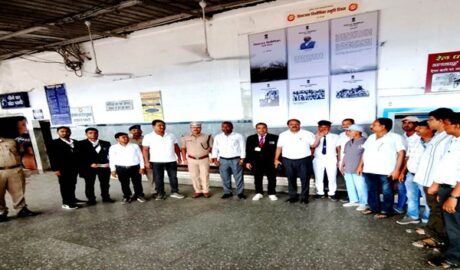 इसके पूर्व सेवानिवृत्त प्रमुख मुख्य यांत्रिक इंजीनियर आर0 पी0 सिंह एवं अधिकारियों द्वारा बनारस स्टेशन के सामान्य यात्री हाल में राष्ट्रगान गाया गया ।