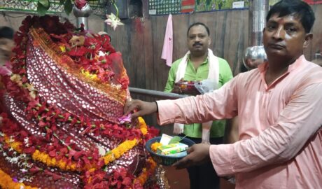 नवरात्र: भगवान बाजार दुर्गा मंदिर में स्थापित माँ दुर्गा की प्रतिमा का पट खुला