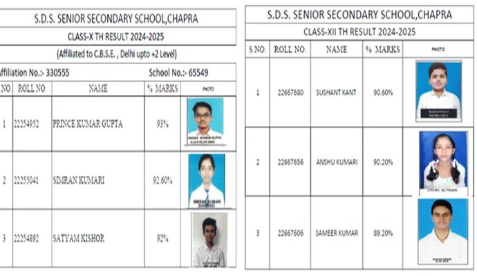 विद्यालय में भैया विवेक कुमार ने 96%, अंक प्राप्त कर सारण जिला में अपना दब दबा बनाते हुए प्रथम स्थान प्राप्त किया है। सत्यम कुमार 94%अंक प्राप्त कर द्वितीय स्थान प्राप्त किया। वहीं प्रत्युष एवं कृष्ण कुमार 93.6% अंक प्राप्त कर तृतीय स्थान, समीर कुमार सिंह 92.8%अंक प्राप्त कर चतुर्थ स्थान, ज्योति कुमारी 91.4% अंक प्राप्त कर पंचम स्थान प्राप्त कर अपने माता-पिता एवं विद्यालय तथा समाज का नाम रौशन किया है।