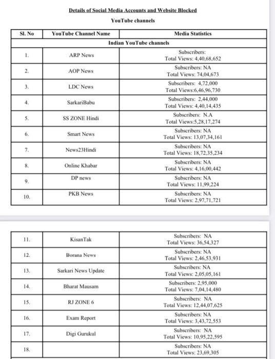 आईटी नियम, 2021 के तहत पहली बार 18 भारतीय YouTube समाचार चैनल ब्लॉक किए गए. जिनमे