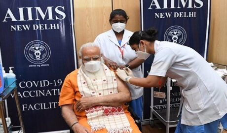 नयी दिल्ली; प्रधानमंत्री नरेंद्र मोदी ने गुरुवार को एम्स में कोरोना वैक्सीन की दूसरी डोज ली। वे सुबह छह बजे वैक्सीन की दूसरी डोज लेने के लिए एम्स पहुंचे। प्रधानमंत्री ने ट्वीट कर इसकी जानकारी दी।