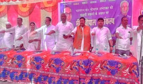 बीजेपी नेता अशोक कुमार सिंह के नेतृत्व में लोगों ने सुना प्रधानमंत्री नरेन्द्र मोदी के मन की बात का 100वां संस्करण