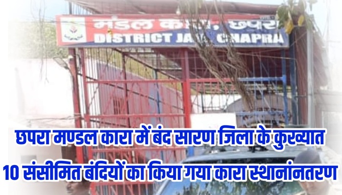 Chhapra: सारण जिलें में हत्या, लूट, डकैती एवं अन्य दर्जनों कांडों में अरोपित संसीमित अपराधकर्मी, जो मण्डल कारा में थे, इनकी अपराधिक गतिविधि एवं जिले में शांति व्यवस्था के मद्देनजर जिलाधिकारी, सारण एवं वरीय पुलिस अधीक्षक, सारण के द्वारा राज्य के अन्य केंद्रीय कारा में स्थानांतरित करने की अनुशंसा की गयी। जिसके आलोक में त्वरित कार्रवाई करते हुए इन्हे राज्य अन्य केन्द्रीय कारा में स्थानांतरित किया जा रहा है।
