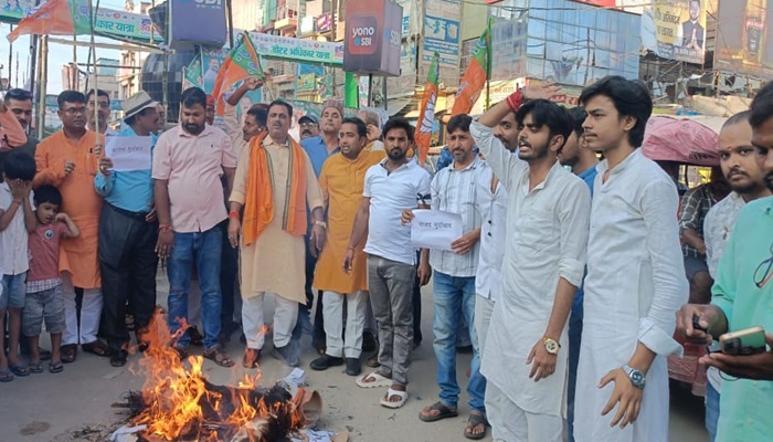 Chhapra: भारतीय जनता पार्टी युवा मोर्चा के द्वारा राहुल गांधी और तेजस्वी यादव का पुतला दहन किया गया। इस कार्यक्रम में पार्टी कार्यकर्ताओं द्वारा महागठबंधन के नेताओं का विरोध किया गया।