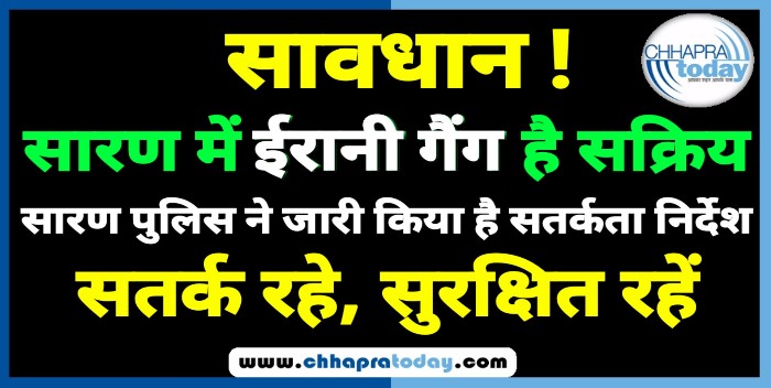सारण पुलिस ने कहा छपरा में इरानी गैंग है सक्रिय, सतर्क रहें सुरक्षित रहें