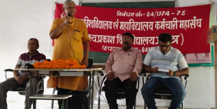 Chhapra: बिहार राज्य विश्वविद्यालय एवं महाविद्यालय कर्मचारी महासंघ की बैठक, जय प्रकाश विश्वविद्यालय छपरा प्रक्षेत्र के अध्यक्ष शिलानाथ सिंह की अध्यक्षता में राम जयपाल महाविद्यालय में हुई.