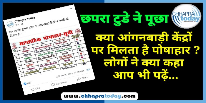छपरा टुडे ने आम जनता से आंगनबाड़ी केंद्रों पर मिलने वाले पोषाहार की दैनिक सूची जारी करते हुए लोगों से पूछा गया कि क्या आपके मुहल्ले टोलों में बच्चों को यह लाभ मिलता है. लोगों का जवाब आश्चर्य चकित करने वाला था. दो घंटे के अंदर ही 275 लोगों ने इसका जवाब दिया. जिसमे सरकारी तंत्र और कदम कदम पर व्याप्त भ्रष्टाचार होने की बात लोगों ने कही.