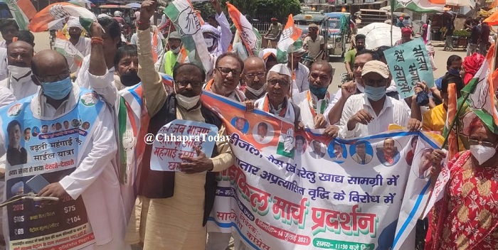 Chhapra: पेट्रोल-डीजल और खाद्य सामग्रियों के मूल्य में अप्रत्याशित वृद्धि के विरोध में बुधवार को सारण जिला कांग्रेस कमिटी के द्वारा साइकिल मार्च निकाला कर प्रदर्शन किया गया. प्रदर्शन की शुरुआत नगरपालिका चौक से हुई जो छपरा कचहरी स्टेशन तक गयी.