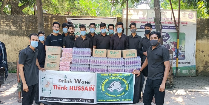 Chhapra: चेहलूम के मौके पर कर्बला के भूखे और प्यासे 72 शहीदों के नाम पर हुसैनी युथ वेलफेयर छपरा द्वारा किया गया पानी और बिस्किट का वितरण. हुसैनी युथ वेलफेयर के सदस्य राशिद रिज़वी ने कहा कि कर्बला में रसूल स.अ. के नवासे इमाम हुसैन अ.स. और उनके घर वालों पर कर्बला में बहूत ज़ुल्म हुआ जिसमे 6 महीने का बच्चा भी शामिल था, जिन पर याज़िदियों ने 3 दिन खाना और पानी बंद कर दिया और उसके बाद शहीद कर दिया.