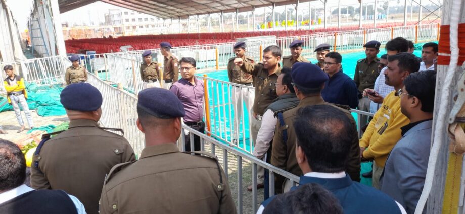 कार्यक्रम के आयोजन के अवसर पर विधि व्यवस्था बनाये रखने के उद्देश्य से आज जिलाधिकारी अमन समीर एवं पुलिस अधीक्षक डॉ० गौरव मंगला ने कार्यक्रम स्थल का निरीक्षण किया। सुरक्षा की दृष्टिकोण से चारों तरफ बैरिकेडिंग कराने को कहा गया। विभिन्न श्रेणी के वाहनों की पार्किंग हेतु अलग अलग व्यवस्था सुनिश्चित करने को लेकर महत्वपूर्ण दिशा निदेश दिया गया।