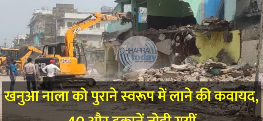 Chhapra: NGT न्यायालय के आदेश के आलोक जिला प्रशासन के द्वारा शनिवार को मौना चौक स्थित खनुआ नाला पर निर्मित 40 दुकानों को हटाने का कार्य शुरू किया.