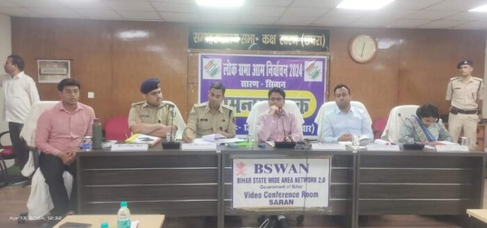 Chhapra: लोकसभा आम चुनाव के अवसर पर महाराजगंज लोकसभा क्षेत्र के अंतर्गत पड़ने वाले सिवान जिला के महाराजगंज एवं गोरियाकोठी विधानसभा क्षेत्र में पूर्व तैयारी एवं मतदान के दिन की व्यवस्था हेतु समन्वय को लेकर शनिवार को सारण एवं सिवान जिला के जिलाधिकारी, पुलिस अधीक्षक एवं दोनों विधानसभा के एआरओ एवं अन्य संबंधित पदाधिकारियों के साथ समाहरणालय सभागार में बैठक आहुत की गई।