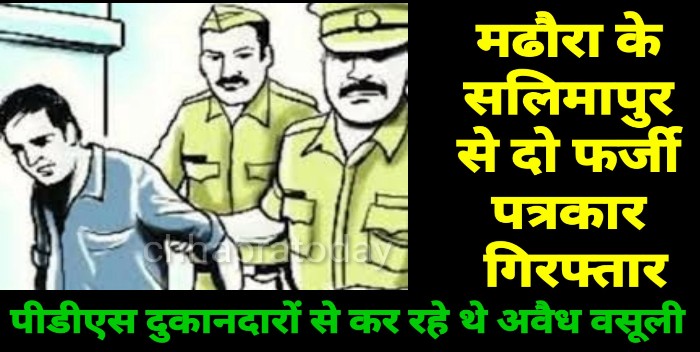 Madhaura: मढौरा अनुमंडल के गौरा ओपी थाना क्षेत्र स्थित सलिमापुर गांव से अवैध वसूली करते हुए दो फर्जी पत्रकारों को पुलिस ने धार दबोचा. फर्जी पत्रकारों को ग्रामीणों ने पकड़ कर गौरा ओपी पुलिस को सौंप दिया.