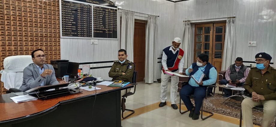 Chhapra: जिलाधिकारी राजेश मीणा की अध्यक्षता में कोविड टीकाकरण और कोविड टेस्टिंग से संबंधित वीडियो कन्फ्रेंसिंग के माध्यम से समीक्षा बैठक की गयी। जिसमें जिलाधिकारी ने कोविड टीकाकरण के लक्ष्य को शत-प्रतिशत हासिल करने को लेकर आवश्यक दिशा-निर्देश दिया। जिलाधिकारी ने कहा कि जिले में 4 और 14 दिसंबर को मेगा टीकाकरण अभियान चलाया जायेगा। इसको लेकर माइक्रोप्लान तैयार किया जाये। इसके साथ उन क्षेत्रों में विशेष रूप से टीकाकरण किया जायें जहां पर टीकाकरण कम हुआ है। जिलाधिकारी ने निर्देश दिया कि आपसी समन्वय स्थापित कर टीकाकरण अभियान को सफल बनाया जाये। टीकाकरण के प्रति आमजनों में जागरूकता लाया जाये। सेकेंड डोज से वंचित लाभार्थियों को चिन्हित कर टीकाकरण करना सुनिश्चित किया जाये।