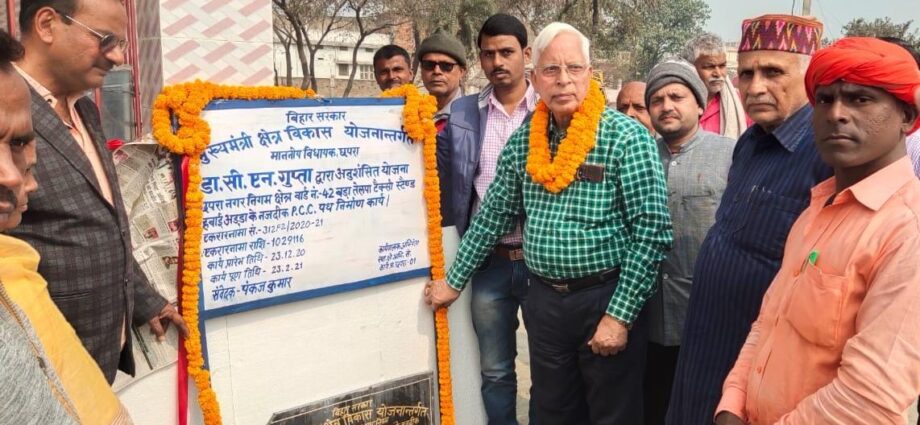 Chhapra: छपरा नगर निगम क्षेत्र के वार्ड संख्या 42 में बड़ा तेलपा टैक्सी स्टैंड हवाई अड्डा के नजदीक तक विधायक कोष से नव निर्मित सड़क निर्माण कार्य का विधायक डॉ सी एन गुप्ता ने उद्घाटन किया.