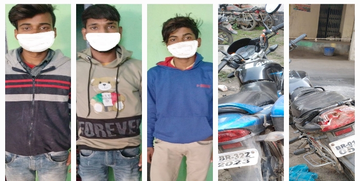 Chhapra: भगवान बाजार थाना पुलिस ने जांच के दौरान बाइक चोरी कर भाग रहे तीन अपराधियों को चोरी की मोटरसाइकिल के साथ धर दबोचा. पुलिस ने इनसे पूछताछ के बाद निशानदेही पर अन्य चोरी की बाइक भी बरामद की है.