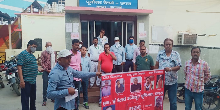 Chhapra: NE रेलवे मजदूर यूनियन के छपरा शाखा के द्वारा बोनस का अलाउंस नहीं करने के विरोध में आज बोनस विरोध दिवस मनाया गया. जिसमें कर्मचारियों ने अपने बोनस की मांग को लेकर विरोध प्रदर्शन किए इसमें दोनों शाखा के शाखा मंत्री शशि भूषण प्रसाद एवं अशोक श्रीवास्तव ने डीजल लॉबी छपरा पर विरोध प्रदर्शन किया.