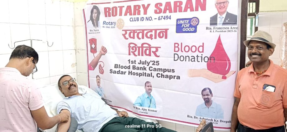 Chhapra: रोटरी सारण ने सत्र 25-26 की शुरुआत ब्लड बैंक, सदर अस्पताल में रक्तदान शिविर लगाकर किया। इस शिविर में अध्यक्ष महेश गुप्ता, सचिव डॉ० आशुतोष दीपक, पूर्व अध्यक्ष अजय कुमार (डाटा प्रो), राजेश गोल्ड, अजय गुप्ता, राजेश कुमार ऑटो सेंटर आदि ने रक्तदान किया।