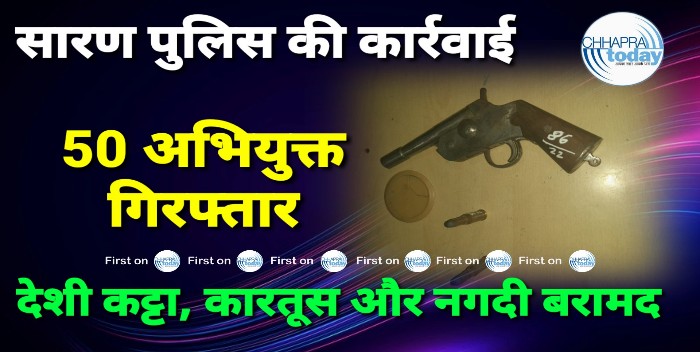 सारण पुलिस की कार्रवाई 50 अभियुक्त गिरफ्तार, एक देशी कट्टा और जिंदा कारतूस के साथ 15 हजार रुपये बरामद