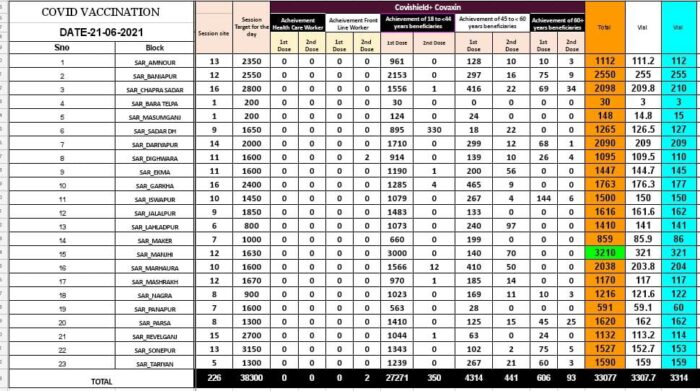 एक और उपलब्धि #सारण जिलेवासियों के सहयोग से।@nildeoreIAS pic.twitter.com/68QlUM9kCj— DISTRICT ADMlNISTRATION SARAN (@Saran_dm) June 21, 2021