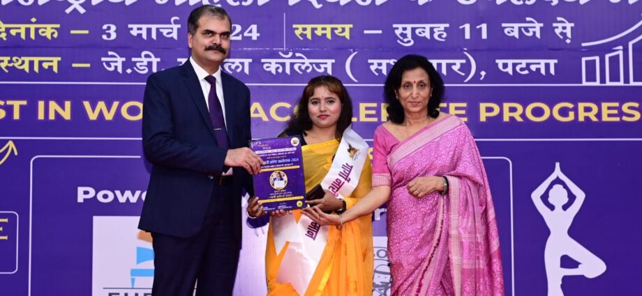 Chhapra: अंतरराष्ट्रीय महिला दिवस के उपलक्ष्य पर अयोजित पटना के जे डी वूमेंस कॉलेज के सभागार में आइए मिलकर प्रेरित करे बिहार के गार्गी अध्याय के तहत अयोजित नारी शक्ति सम्मेलन में बिहार की बेटी, राष्ट्रपति से सम्मानित कुमारी अनीषा को शिक्षा और संस्कृति के क्षेत्र में उत्कृष्ट कार्य करने के लिए गार्गी अचीवर्स अवार्ड 2024 से सम्मानित किया गया।
