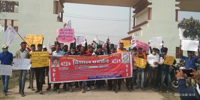 उन्होंने समस्याओं को गिनाते हुए आगे बताया कि 2020-2023 की अंतिम सूची का अभी तक प्रकाशन नहीं होना, मेधावी शोधार्थियों को जे आर एब और आर जी एन एफ के लाभ से लम्बे समय से बंचित रखना, परीक्षा विभाग और पी एच डी विभागा में मार्कसीट में त्रुटि सुधार एंव शोध पत्र जमा करने में अवैध वसूली, प्रायोगिक कक्षाओं की अनियमितता, लम्बे समय से शोध में प्रवेश हेतु आवेदन का प्रकाशन नहीं करना आदि समस्याएं ऐसी हैं कि छात्रों के उज्जवल भविष्य को ही गर्त में धकेल रही है। इतना ही नहीं छात्रों को मूल भूत सुविधा देने में भी हमारा यह विश्वविद्यालय असफल है। जैसे कालेज कैम्पसों में शौचालय, पेय जल, प्रतिक्षालय की सुविधाओं से आज छात्र बंचित हैं जिसके चलते खास कर हमारी छात्रा बहनों को काफी कठिनाइयों का सामना करना पड़ रहा है। कई बार आश्वासन के बावजूद भी आज तक राजेन्द्र कालेज का हाँस्टल से छात्रों को बंचित रखा गया है एंव OBC हास्टल का निर्माण कार्य अधूरा है।