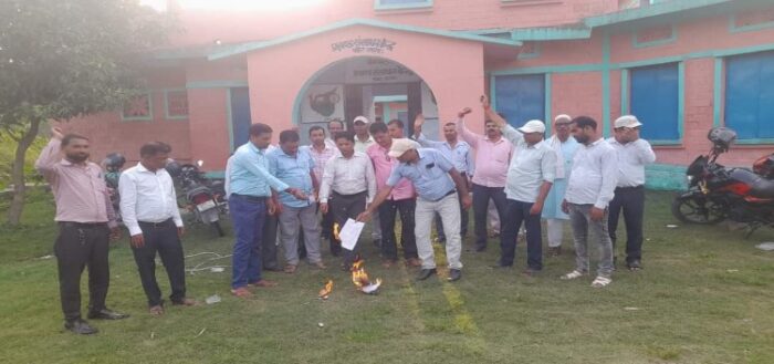 मकेर में शिक्षकों ने जलाई अवकाश तालिका संशोधन की प्रतियां, कहा नही रद्द हुआ पत्र तो सरकार भुगतेगी खामियाजा