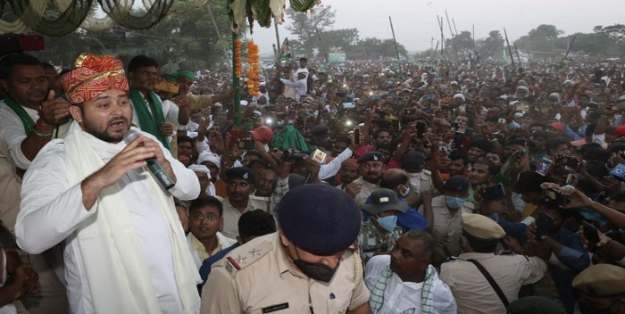 सारण जिले के तरैया में योगीराज देवराहा बाबा कॉलेज मैदान में चुनावी सभा को संबोधित किया. वहीं लहलादपुर के हाई स्कूल मैदान, मढ़ौरा के गोरा मध्य विद्यालय के समीप के मैदान में, रिविलगंज टेकनीवास के समीप मैदान में एवं गरखा के जनता हाई स्कूल मैदान में चुनावी सभा को तेजस्वी यादव ने संबोधित किया.
