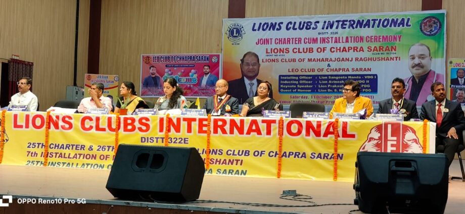 Chhapra: लायंस क्लब्स इंटरनेशनल की स्थानीय इकाई लायंस क्लब ऑफ छपरा सारण, महाराजगंज रघुशांति एवं लियो क्लब ऑफ छपरा सारण का संयुक्त चार्टर- कम – इंस्टॉलेशन सेरेमनी के कार्यक्रम का उद्घाटन लायन डॉ एस के पांडेय, लायन प्रकाश नंदा, लायन संगीता नंदा एवं लायन गीता शर्मा द्वारा दीप प्रज्ज्वलित कर भिखारी ठाकुर प्रेक्षा गृह में खुशीपूर्ण माहौल में संपन्न हुआ। जिसमें जिला 322ई के पी डी जी लायन डॉ एस के पांडेय द्वारा LY- 2025- 26 के लिए सभी क्लब अधिकारियों को इंडक्ट किया गया ।